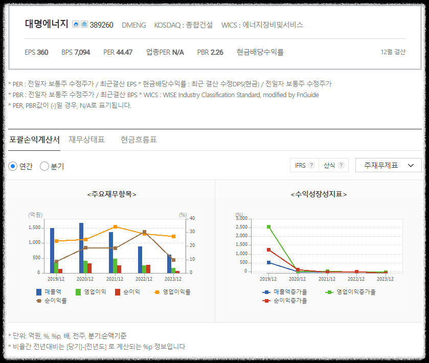 -2023년 12월 전년동기 대비 연결기준 매출액은 29.9% 감소, 영업이익은 34.6% 감소, 당기순이익은 76.5% 감소. 향후 글로벌 전력 설비 증가의 상당 부분이 태양광과 풍력으로 이뤄질 전망이며, 특히 태양광 발전과 ESS를 결합한 수요가 빠르게 늘어날 것으로 예상됨. 향후 성장할 신재생에너지 O&M(Operating & Maintenance) 사업 확장 및 가상발전소 사업자로 진출하기 위해 기술개발을 지속할 예정임.