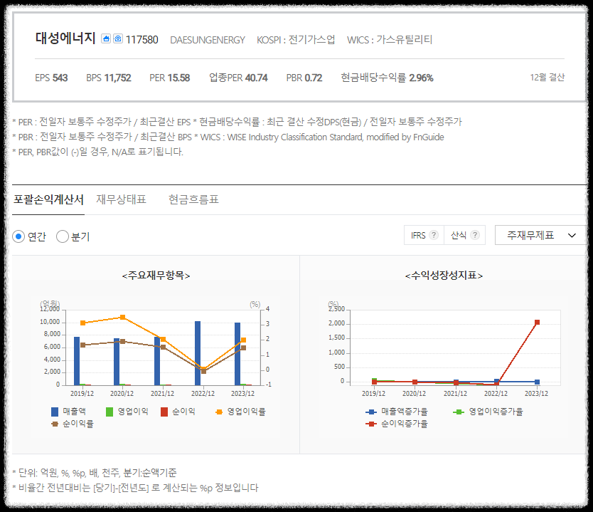 -2023년 12월 전년동기 대비 연결기준 매출액은 2.1% 감소, 영업이익은 2071.7% 증가, 당기순이익 흑자전환. 2023년 말 현재 회사의 매출액은 도시가스 부문이 97% 이상을 차지하고 있으며, 기타 상품매출 등이 비중이 작아 안정된 사업구조를 가지고 있다고 볼 수 있음. 동사는 주택용, 영업용 뿐만 아니라 산업용, 업무용 및 연료 전지 등의 수요 개발 확대를 적극적으로 추진 중임.