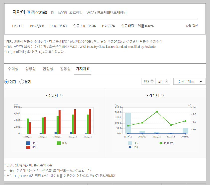 기업 가치 평가에는 여러 가지 방법이 사용되지만, 그중에서 기술 지표를 활용하는 방식을 소개합니다. 디아이는 전체 기술주 2,095개 기업 중 1,048위 등급인 입니다. 대표 섹터 평가 기업 중 등급인 입니다. 대표 테마 평가 기업 중에서는 를 차지했습니다. 이를 바탕으로 투자 매력도를 평가해 보면 전체 기술주, 대표 섹터, 대표 테마의 결과를 얻을 수 있습니다. 동종분야 기업들의 평균적인 기술력 대비 주가에 비하여 현재 동사의 기술력 대비 주가는 고평가 되어 있습니다.