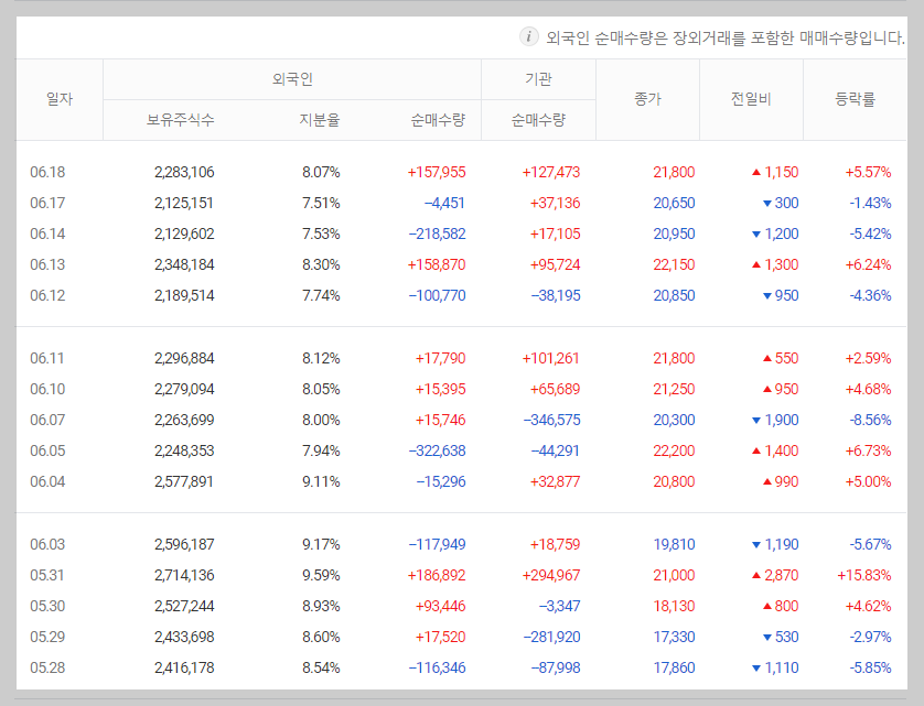 따라서 개인 투자자는 기관이나 외국인 세력을 따르고, 세력이 약해도 어떤 주식을 매수하고 매도하여 이익을 얻습니다. 최근에는 외국인보다 기관 투자자를 따르는 사례가 늘고 있습니다. 외국인의 매수는 가짜일 가능성이 크며 개인의 단기 거래는 기관과 흡사하기 때문입니다.