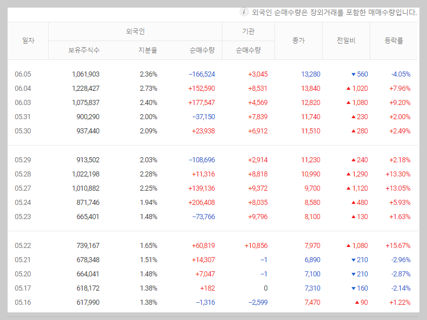 외국인과 기관이 모두 매수하는 종목에 투자하는 것은 가장 좋은 상황이며, 이것은 그 종목이 우수하다는 것을 나타냅니다. 기업의 현재 상태와 시장에서의 위치, 그리고 기관과 외국인의 매수 추세를 분석하면 주식의 전망을 정확히 파악할 수 있으며, 이것은 수익률을 높이는 데 중요합니다.