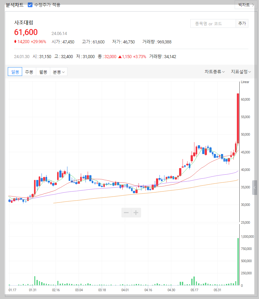 사조대림 주가 분석