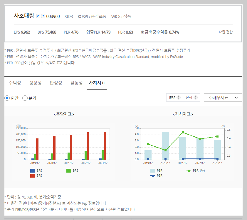 사조대림 가치 분석
