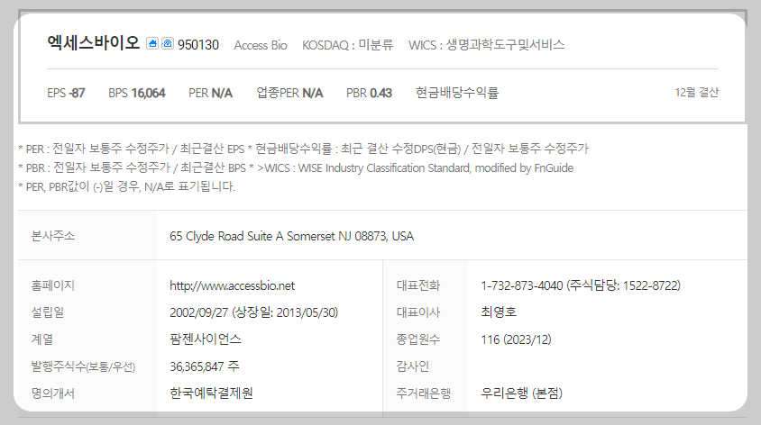엑세스바이오 주식 결론