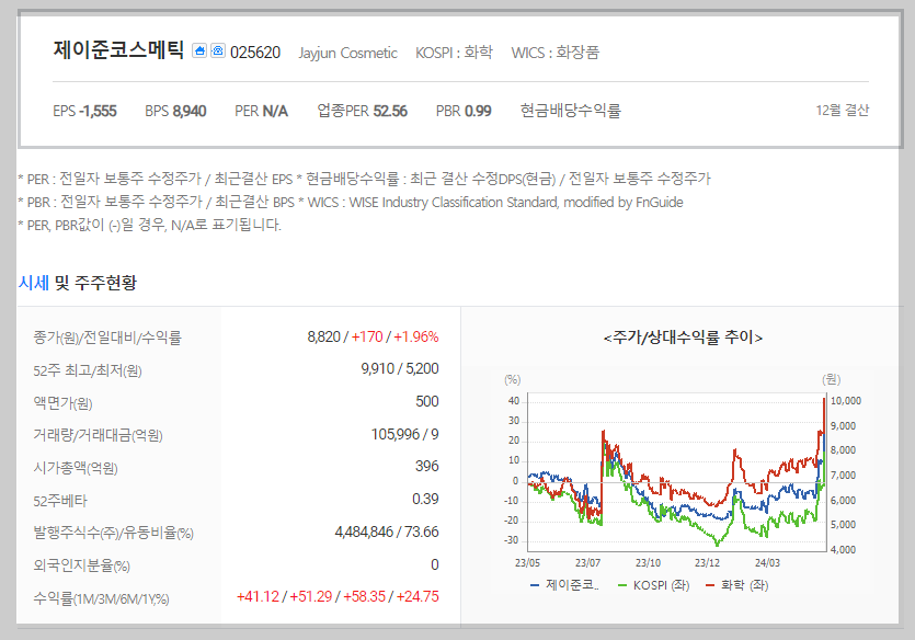 제이준코스메틱 가치 분석