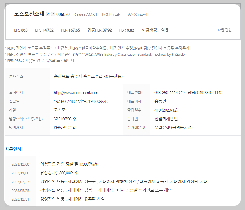대주주 정보는 단기 투자에는 중요하지 않을 수 있지만, 장기적인 투자를 고려하고 있다면 대주주와 대표의 정보를 알아두는 것이 좋습니다.