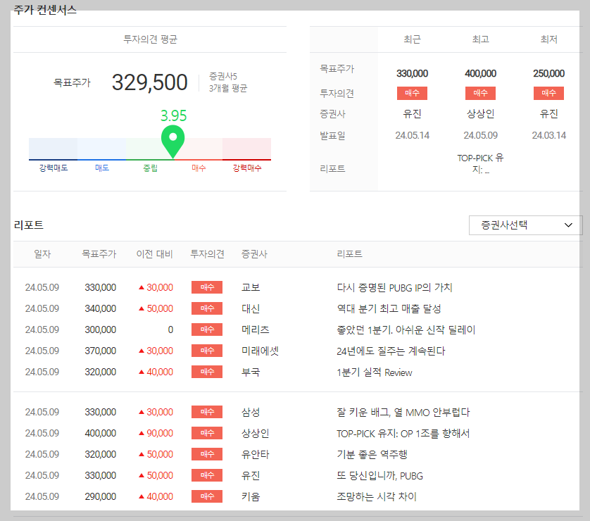 이 글에서는 크래프톤 주가 전망과 목표 주가, 기업 정보에 대해서 설명합니다. 주식 시장에서 중요한 것은 미래의 기업 가치를 예측하고 선제적으로 움직이는 것입니다. 투자 대상을 선택하기 전에 현재 기업의 현황과 데이터를 확인하는 것이 필요합니다. 크래프톤 주식의 주요 현황과 투자 정보를 확인하시고 주식 투자에 도움이 될 만한 정보들을 모아 놓았으니 투자를 고려하실 때 참고하세요..