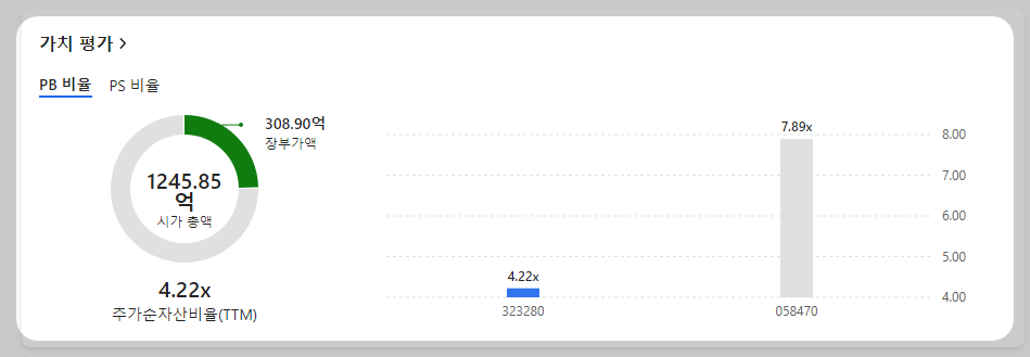 기업 가치 평가를 위한 방법은 많지만, 그중에서 기술 지표를 활용한 방법을 소개합니다. 태성은 전체 기술주 2,091개 기업 중 1,027위 등급인 입니다. 대표 섹터 평가 기업 중 등급인 입니다. 대표 테마 평가 기업 중에서는 를 차지했습니다. 이를 바탕으로 투자 매력도를 평가해 보면 전체 기술주, 대표 섹터, 대표 테마의 결과를 얻을 수 있습니다. 동종분야 기업들의 평균적인 기술력 대비 주가에 비하여 현재 동사의 기술력 대비 주가는 적정합니다.