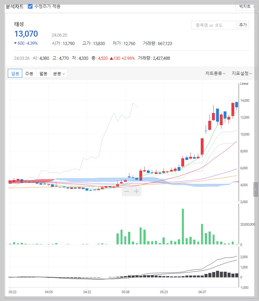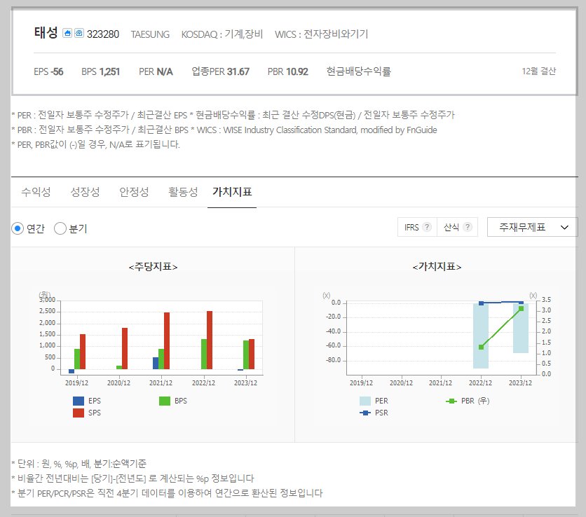 기업의 가치를 평가하는 방법은 여러 가지가 있는데, 그중에서 기술 지표를 활용하는 방법을 소개합니다. 태성은 전체 기술주 2,095개 기업 중 1,022위 등급인 입니다. 대표 섹터 평가 기업 중 등급인 입니다. 대표 테마 평가 기업 중에서는 를 차지했습니다. 이를 바탕으로 투자 매력도를 평가해 보면 전체 기술주, 대표 섹터, 대표 테마의 결과를 얻을 수 있습니다. 동종분야 기업들의 평균적인 기술력 대비 주가에 비하여 현재 동사의 기술력 대비 주가는 고평가 되어 있습니다.