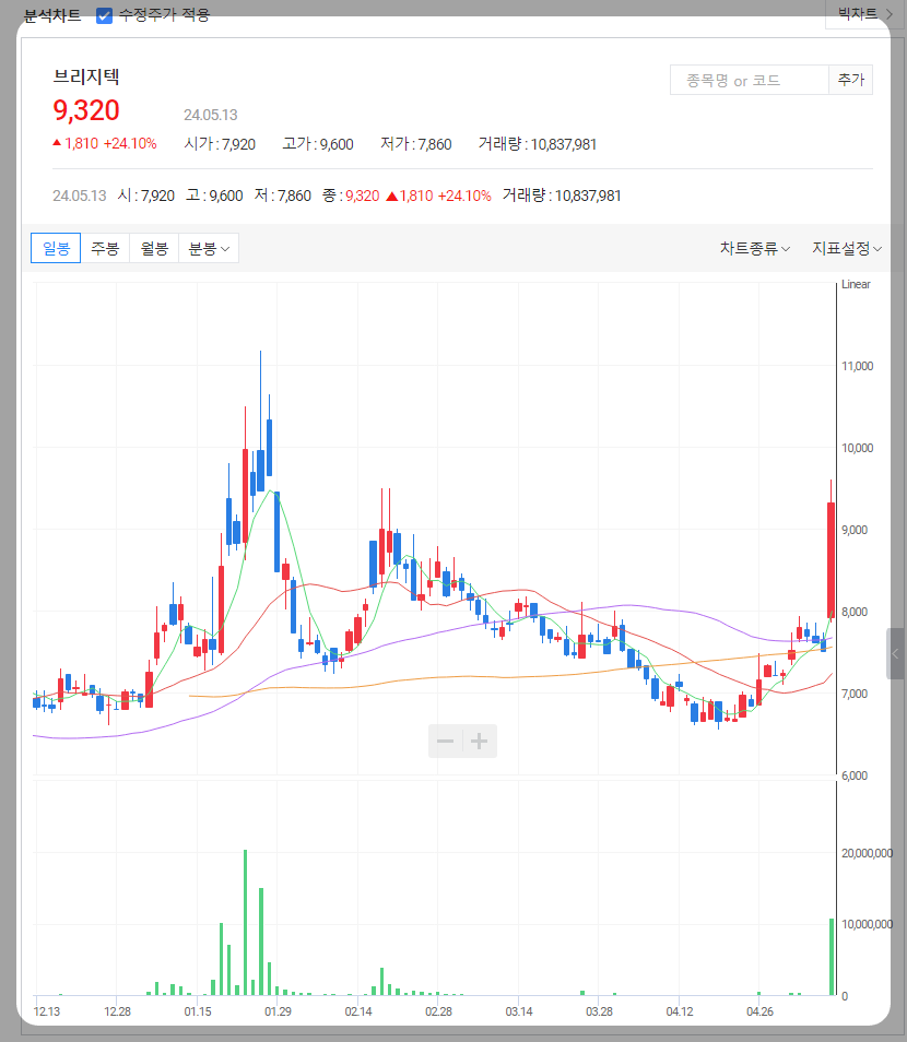 브리지텍 주가 분석