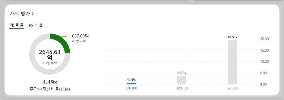 기업 가치 평가를 위한 방법은 많지만, 그중에서도 기술 지표를 활용하는 방법을 소개합니다. 퓨쳐켐은 전체 기술주 2,091개 기업 중 830위 등급인 입니다. 대표 섹터 평가 기업 중 등급인 입니다. 대표 테마 평가 기업 중에서는 를 차지했습니다. 이를 바탕으로 투자 매력도를 평가해 보면 전체 기술주, 대표 섹터, 대표 테마의 결과를 얻을 수 있습니다. 동종분야 기업들의 평균적인 기술력 대비 주가에 비하여 현재 동사의 기술력 대비 주가는 적정합니다.