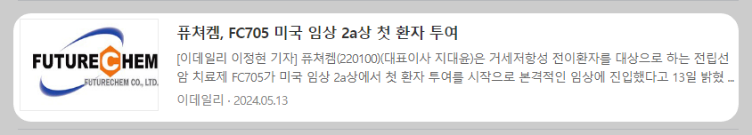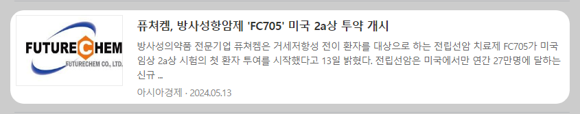 퓨쳐켐, 전립선암 치료제 임상 1상 순항 소식에 주가...