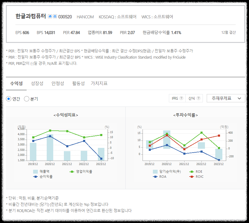 -2023년 12월 전년동기 대비 연결기준 매출액은 12% 증가, 영업이익은 36.5% 증가, 당기순이익은 67.7% 감소. 원격, 비대면 업무 및 학업을 위한 오피스 소프트웨어 수요의 급증을 바탕으로 클라우드 시장으로 사업 영역을 확장하고자 메일, 드라이브, 메신저, 캘린더 등을 접목한 업무협업플랫폼 사업분야에 진출하였음. 한컴싸인, 한컴독스를 출시하며 SaaS의 영역으로 사업을 확대하고 있음.
