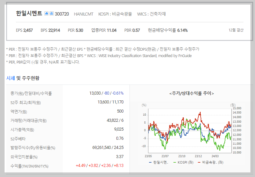 이 글에서는 한일시멘트 주가 전망과 목표 주가, 기업 정보에 대해서 설명합니다. 주식 거래에서 중요한 부분은 현재 기업 가치보다는 미래의 기업 가치를 예측하고 먼저 행동하는 것입니다. 투자할 종목을 고르기 전에 현재 기업의 상황과 지표를 살펴보는 것이 중요합니다. 한일시멘트 주식의 주요 현황과 투자 정보를 확인하시고 주식 투자를 고려하고 계신다면 유용한 정보들을 모아 놓은 자료를 확인해 보세요.