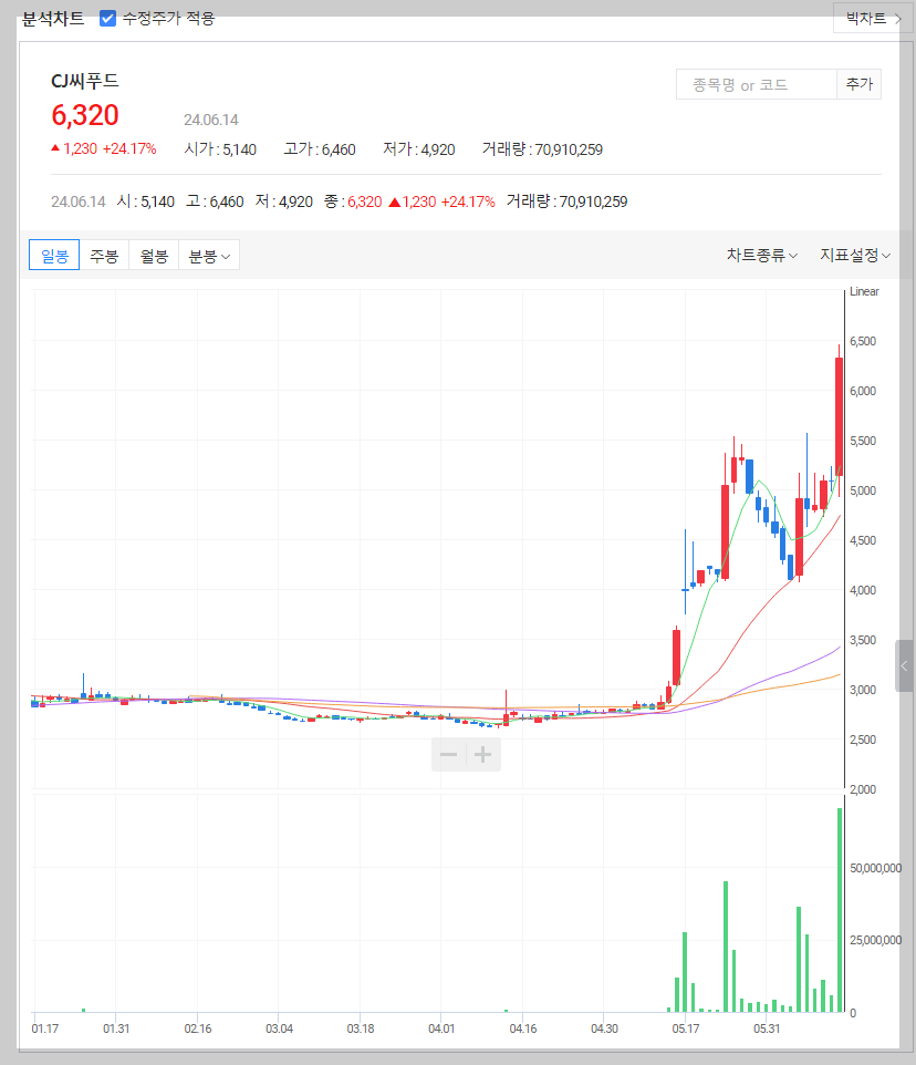 | 사조대림 주가 전망 목표 주가 매매 동향 주식 분석 (1) | 2024.06.14 |