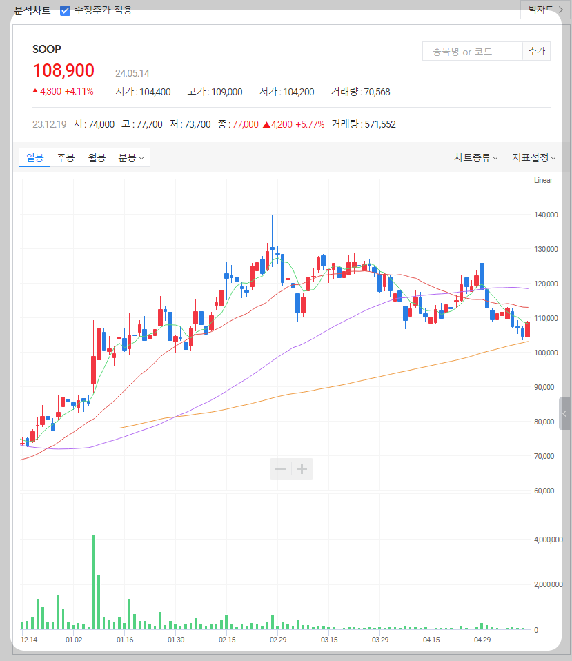 SOOP 주가 전망 목표 주가, 미디어와서비스 관련주